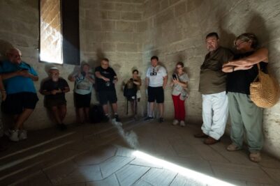 Así, cada 15 de agosto los rayos del sol entran en esta sala del campanario “de forma directa y vertical por la orientación que se le dio al ser construida en el siglo XIV cuando fue diseñada así por los maestros de obra para que se produjera este alineamiento, como homenaje a la Virgen en la fiesta de la Asunción y también como una tradición en ciertas construcciones de la época”, añade.