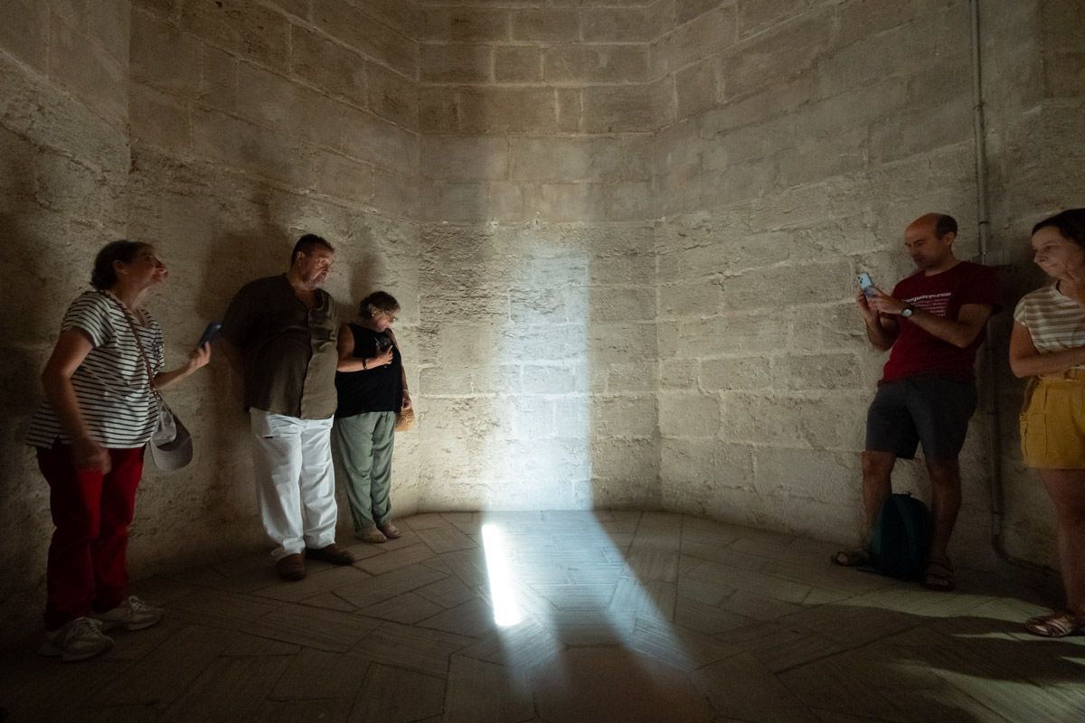 Fueron los campaneros de la Catedral los que lo descubrieron en 2010 “de forma casual cuando, al bajar después del toque acompañando la entrada de la imagen de la Virgen en la Seo, poco después de las 10 horas, vimos que la luz solar entraba alineada por la ventana de la ´Sala de la Prisión`”, señala Francesc Llop, presidente de los Campaners de la Catedral.
