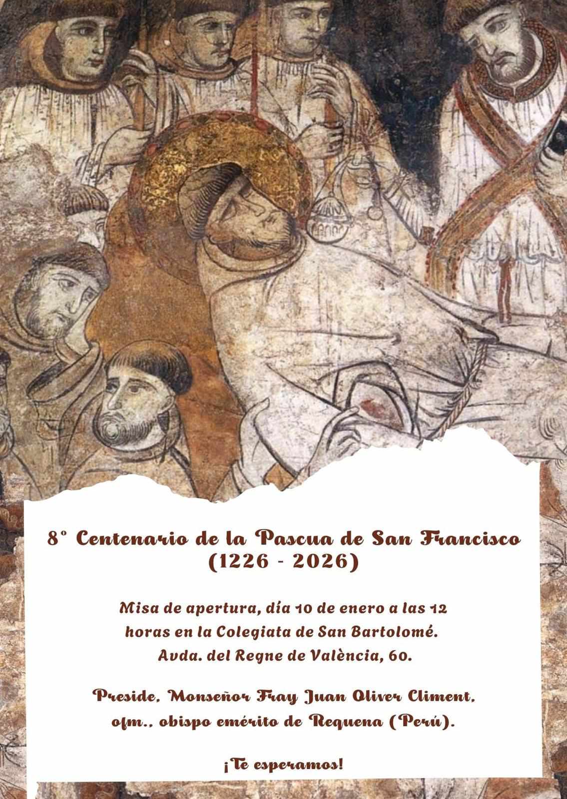 7 Ene 2026 Apertura del VIII Centenario de la muerte de San Francisco de Asís, este sábado, en la Colegiata de San Bartolomé A las 12 horas, presidida por Mons. Juan Oliver, Obispo emérito de Requena (Perú)