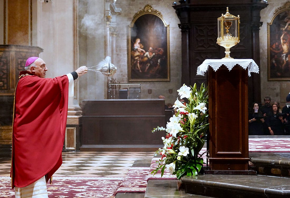 El arzobispo de Valencia, monseñor Enrique Benavent, presidió ayer, jueves, la fiesta anual del Santo Cáliz que se venera en la Seo desde el siglo XV.