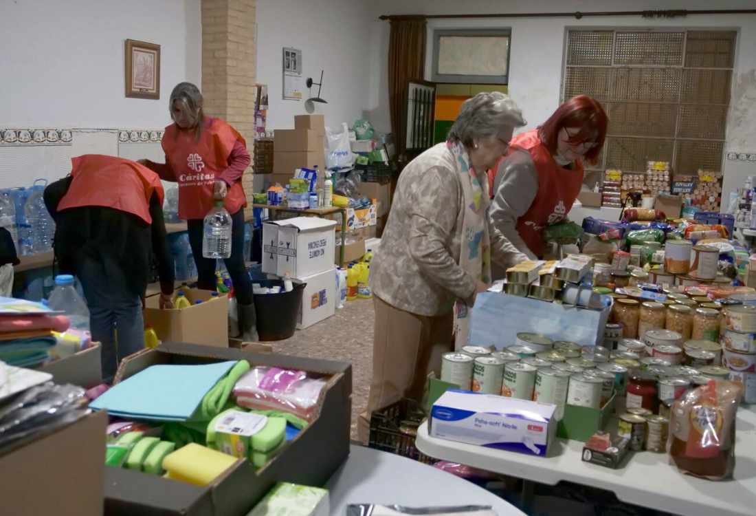 En palabras de Aurora Aranda, directora de Cáritas Valencia: «Nuestro voluntariado ya estaba en las zonas afectadas cuando se produjo la catástrofe, por lo que no han tenido que desplazarse allí; pero, además, en estas primeras semanas, las comunidades parroquiales, la Iglesia entera se ha volcado con las personas afectadas y se ha involucrado en tareas de limpieza, reparto y acompañamiento».