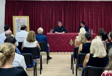 La Hermandad, unida en espíritu y fe, acogió con profunda emoción la charla del rector sobre la historia y veneración a la Mare de Déu, un día de unión entre Almería y Valencia, origen de la devoción.
