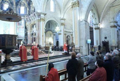 El cardenal arzobispo de Valencia, Antonio Cañizares, ha presidido hoy domingo, en la Catedral, la celebración del Domingo de Ramos, que ha sido retransmitida por el canal Youtube de la Seo.