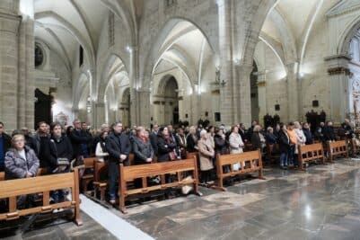 Mons. Enrique Benavent ha recordado que la finalización del Año de la Esperanza tendrá como una prolongación en nuestra diócesis el Año jubilar eucarístico del Santo Cáliz, el sacramento que mantiene viva esa esperanza y la comunión eclesial”, y ha hecho referencia a la imagen del Cristo del Rescate que durante el año ha presidido las celebraciones jubilares, según ha explicado, porque “el Papa Francisco quiso que una imagen de Cristo crucificado presidiera las celebraciones de la Catedral durante este año jubilar. En Él encuentran consuelo los que sufren camino a los que se sienten perdidos y sin rumbo en la vida y esperanza a los que viven en el trance de la muerte. En el camino de la fe no dejemos nunca de mirar a María, que con su presencia mantenga viva la fe en nuestra diócesis y en toda la Iglesia, capaz de sembrar esperanza en nuestro mundo”.