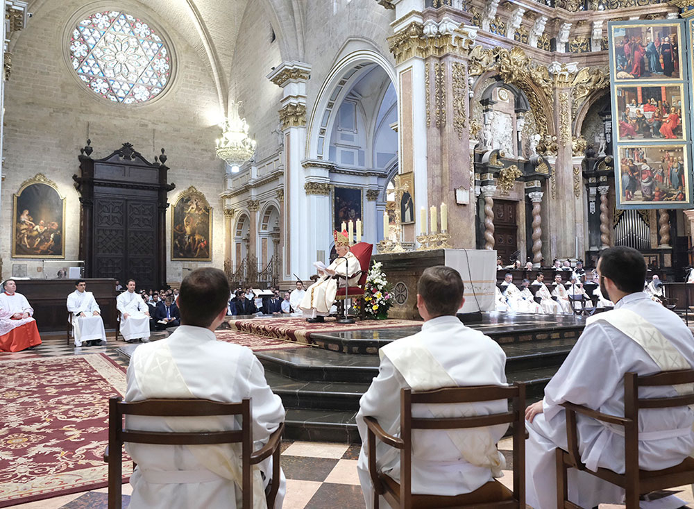 El cardenal arzobispo de Valencia, Antonio Cañizares, ha conferido este sábado la ordenación sacerdotal a cinco diáconos durante la celebración de una misa en la Catedral que ha sido concelebrada por numerosos sacerdotes, entre ellos los rectores y formadores de los Seminarios, miembros de la Curia Diocesana y del Cabildo Metropolitano.