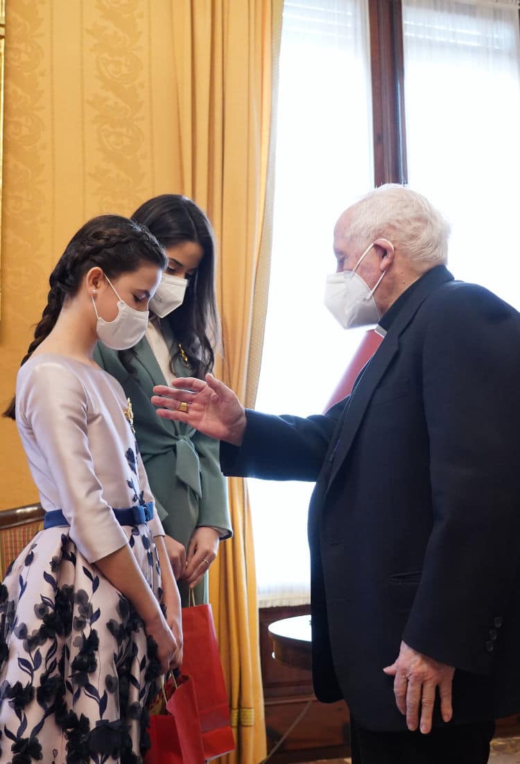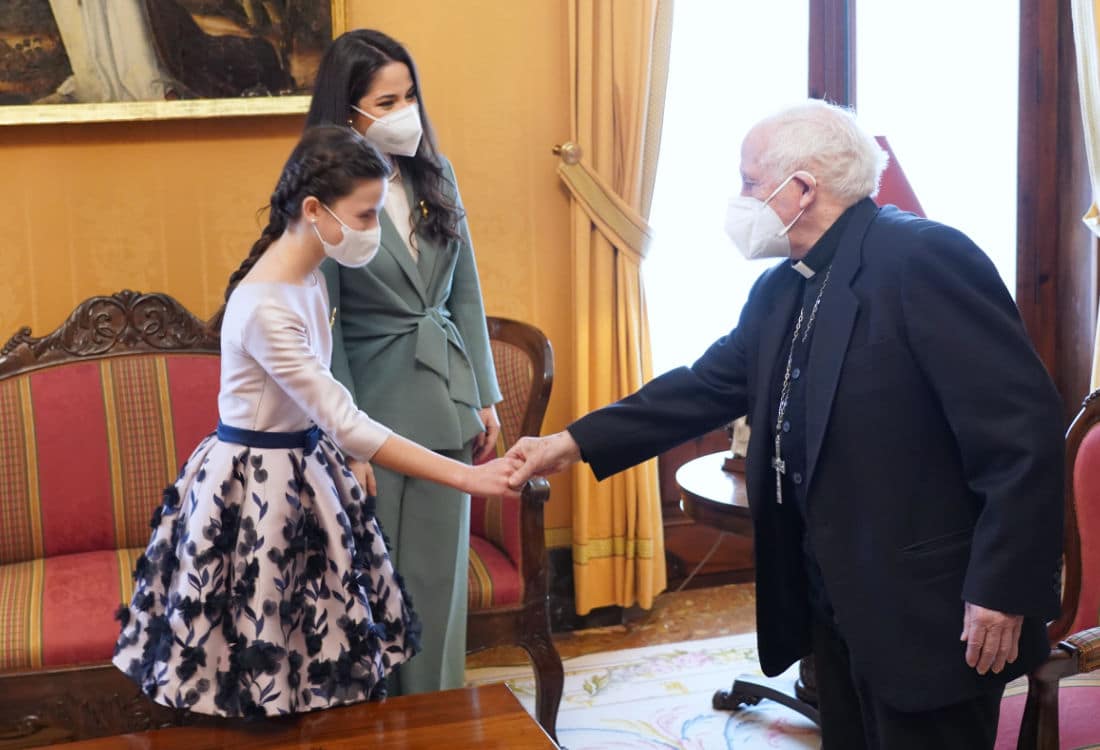 La Fallera Mayor de Valencia, Carmen Martín, y la Fallera Mayor Infantil, Nerea López, han visitado esta mañana al cardenal arzobispo de Valencia, Antonio Cañizares, que las ha recibido en audiencia en el Palacio Arzobispal.