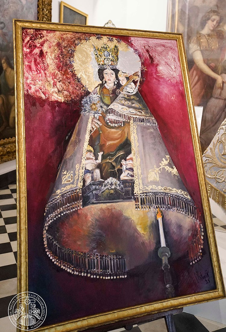 21 Ago 2025 El Museo Mariano de la Virgen de los Desamparados recibe un cuadro de de la artista Aleksandra Istorik Pintado en el estilo de Istorik, "surrealismo dorado"
