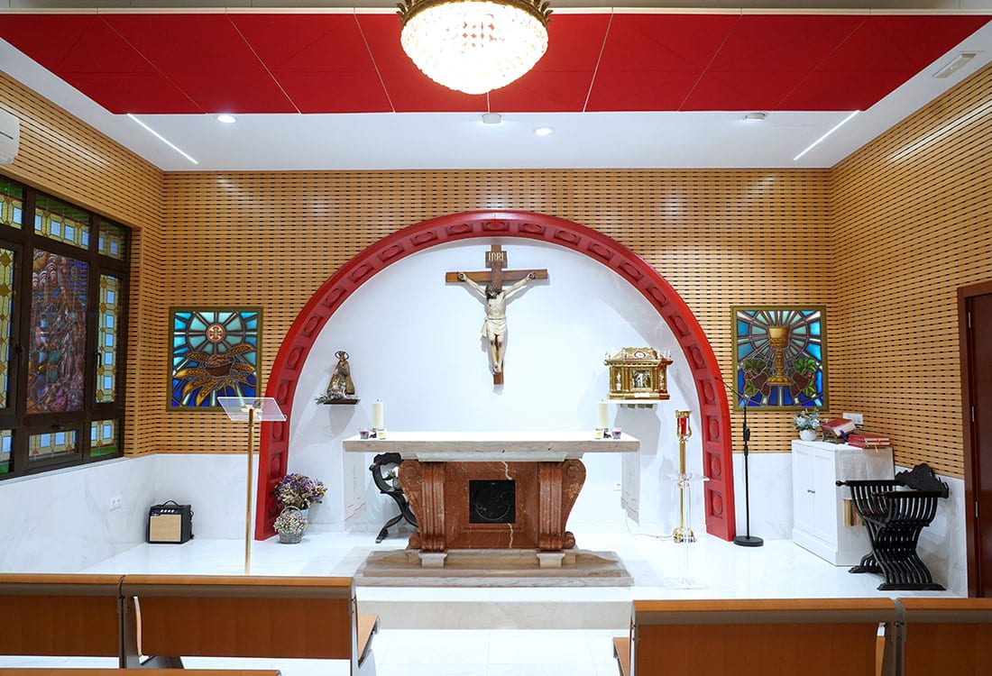 Capilla del colegio donde celebró la eucaristía el entonces cardenal Robert Prevost (Foto: A. Sáiz-Delegación Medios Comunicación Arzobispado Valencia)