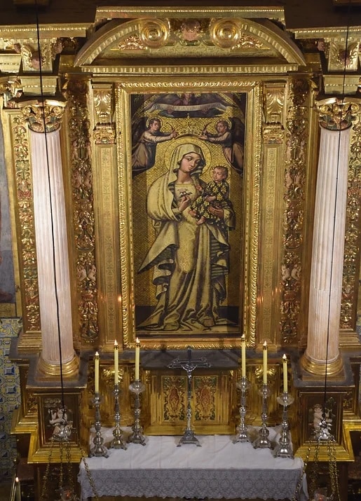 La imagen que preside la capilla de la Virgen de La Antigua fue encargada por el patriarca Juan de Ribera en torno al año 1600. La obra fue realizada por el pintor portugués Vasco de Pereyra y se trata de una fiel réplica de la que se venera en la Catedral de Sevilla desde el siglo XIV.