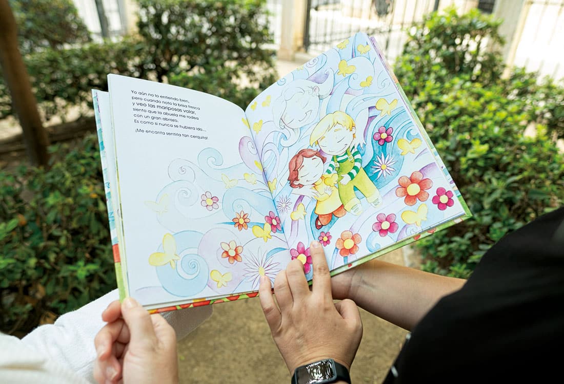 Gracias a mi profesión sabía lo importante que es ser sinceros y no apartarlos del proceso, y también tenía la suerte de conocer recursos y cuentos para trabajar la muerte y el duelo con ellos. Además, mi madre vivió un proceso de cáncer que nos hizo estar preparados para lo que era inevitable y nos dio tiempo para prepararnos en familia para lo que venía. En todo esto, la fe ha sido esencial para poder vivir este proceso con esperanza y transmitirlo así en casa, a nuestros hijos. Durante los últimos meses de vida de mi madre, adquirí diferentes cuentos sobre la muerte. En casa los contábamos y hablábamos sobre ellos, pero sentía que ninguno era “nuestra historia” que no respondía a nuestra forma de vivirlo, no contemplaban esa esperanza de quienes sabemos que la muerte no es el final, de quienes sabemos que la muerte ha sido vencida. Por eso, unos meses después de su muerte, decidí contar nuestra propia historia, una historia en la que el Amor es Eterno y vence incluso a la muerte. Hay muchas maneras de hablar de la resurrección y de la presencia de Dios, se puede hablar de lenguas de fuego como en Pentecostés, del aire que sopla sin saber de dónde viene o a dónde va, y también se puede hablar del suave vuelo de las mariposas, de una presencia delicada, libre y transformadora.