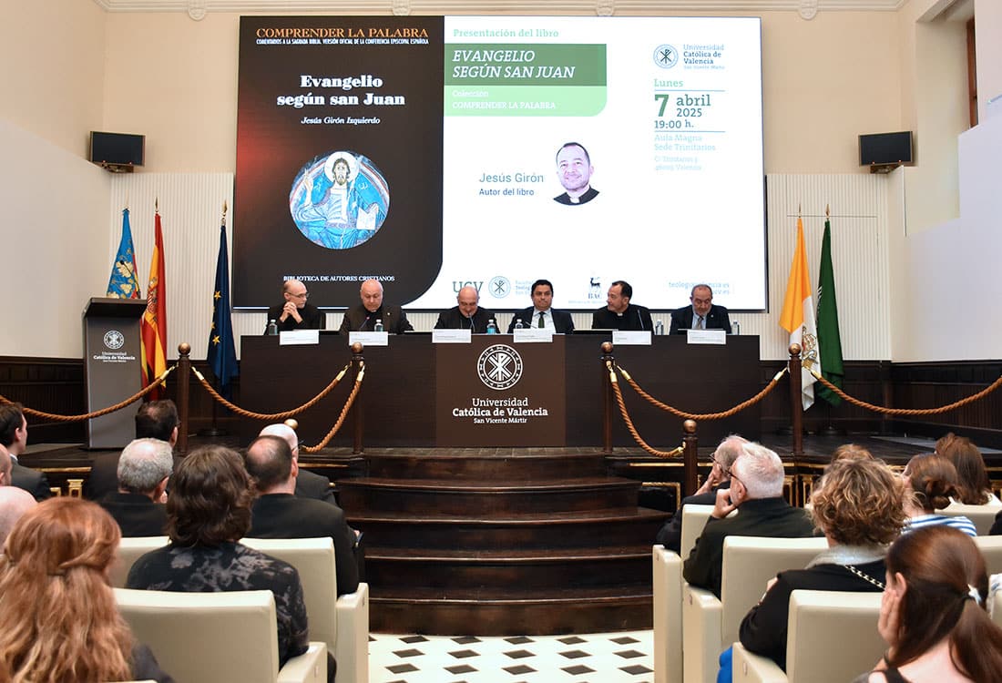 El arzobispo de Valencia y gran canciller de la Universidad Católica de Valencia (UCV), Enrique Benavent, ha presidido el acto de presentación del libro El Evangelio de san Juan (BAC, 2025), del biblista Jesús Girón, presbítero y profesor de la Facultad de Teología en su sede de Trinitarios. En su intervención en el evento, Benavent se ha mostrado “convencido” de que “todo nuevo comentario al Evangelio siempre nos descubre nuevas perspectivas, detalles y aspectos que permanecían escondidos”. En su opinión, “nadie agota el agua de la fuente. Nadie puede apropiarse únicamente para sí mismo de esa fuente, que es el Evangelio”.