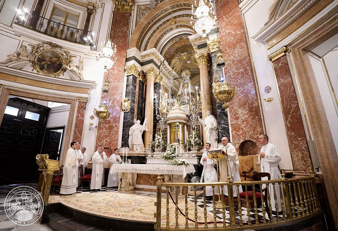 El arzobispo de Valencia, monseñor Enrique Benavent ha presidido una eucaristía de acción de gracias por el 20 aniversario de la ordenación sacerdotal del grupo de sacerdotes de nuestra archidiócesis de Valencia, que han concelebrado la misa a los pies de la Mare de Déu.