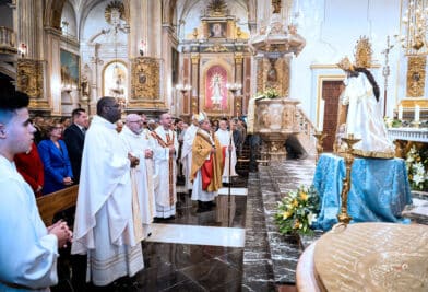 El arzobispo de Valencia, monseñor Enrique Benavent, celebró ayer, domingo, la misa solemne de acción de gracias por la rehabilitación y restauración de la parroquia de San Vicente Mártir de la localidad valenciana de Guadassuar, “un pueblo orgulloso de su iglesia y del patrimonio tan grande de este templo”, destacó su párroco Juan Sivera.
