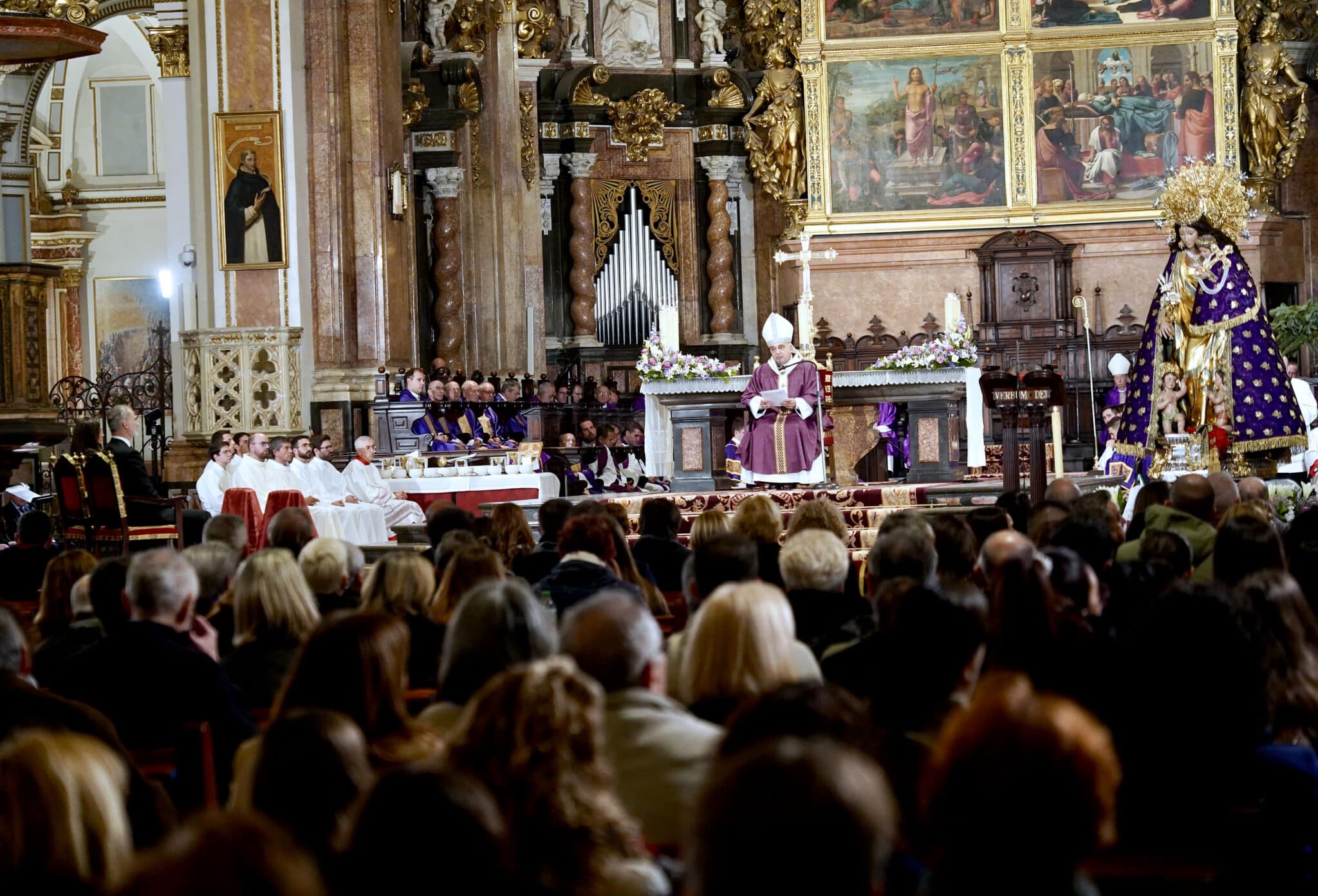 Vora la creu de Jesús està la seua Mare. Durant estos dies els valencians, i també el Sant Pare, li hem dirigit les nostres mirades plenes d’amor. La imatge que hui presideix la nostra celebració ha visitat alguns del pobles afectats. Ella va compartir el sofriment del seu Fill i compartix també el sofriment de tots els que patixen en estos moments. Però ella en la creu no és únicament una dona que patix, és una dona creient: en eixe moment la seua fe és més forta que el seu dolor. No ens fixem únicament en el seu dolor, fixem-nos en la seua fe: ella viu amb la certesa que Déu no abandona al seu Fill. Que tots els afectats tinguen també la certesa que Déu no ha deixat d’estimar-los i que no han sigut abandonats per Ell.