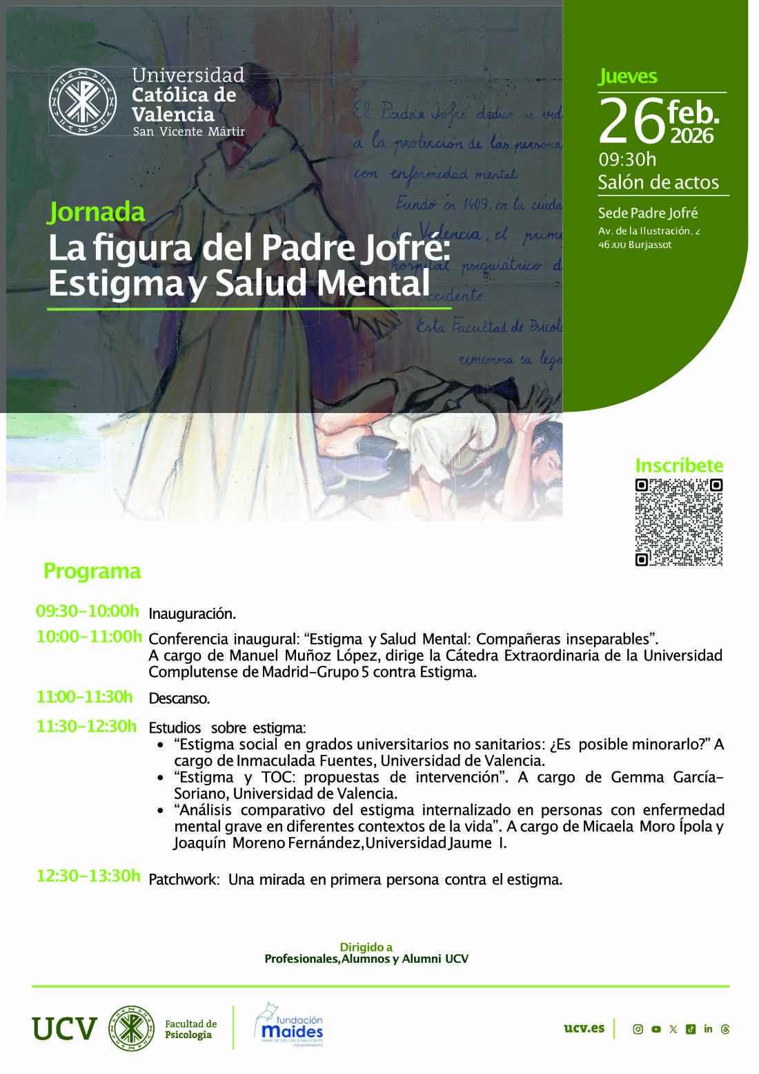 24 Feb 2026 Jornada sobre “La figura del Padre Jofré: Estigma y salud Mental”, este jueves, organizada por la Fundación MAIDES y la UCV Con la participación de ponentes de diversas universidades