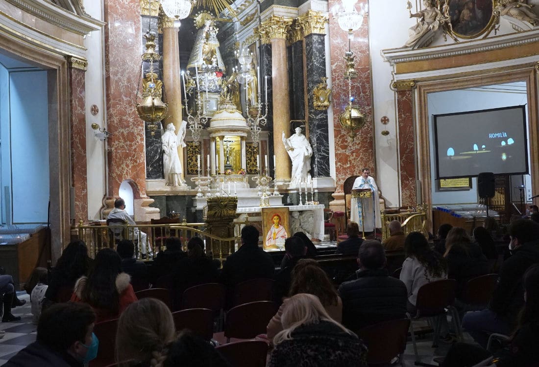 La Basílica de la Virgen de los Desamparados ha acogido la tercera vigilia de oración dirigida a los jóvenes de la diócesis programada este curso, organizada por la delegación de Infancia y Juventud del Arzobispado, en la que los participantes han rezado por la paz en Ucrania.