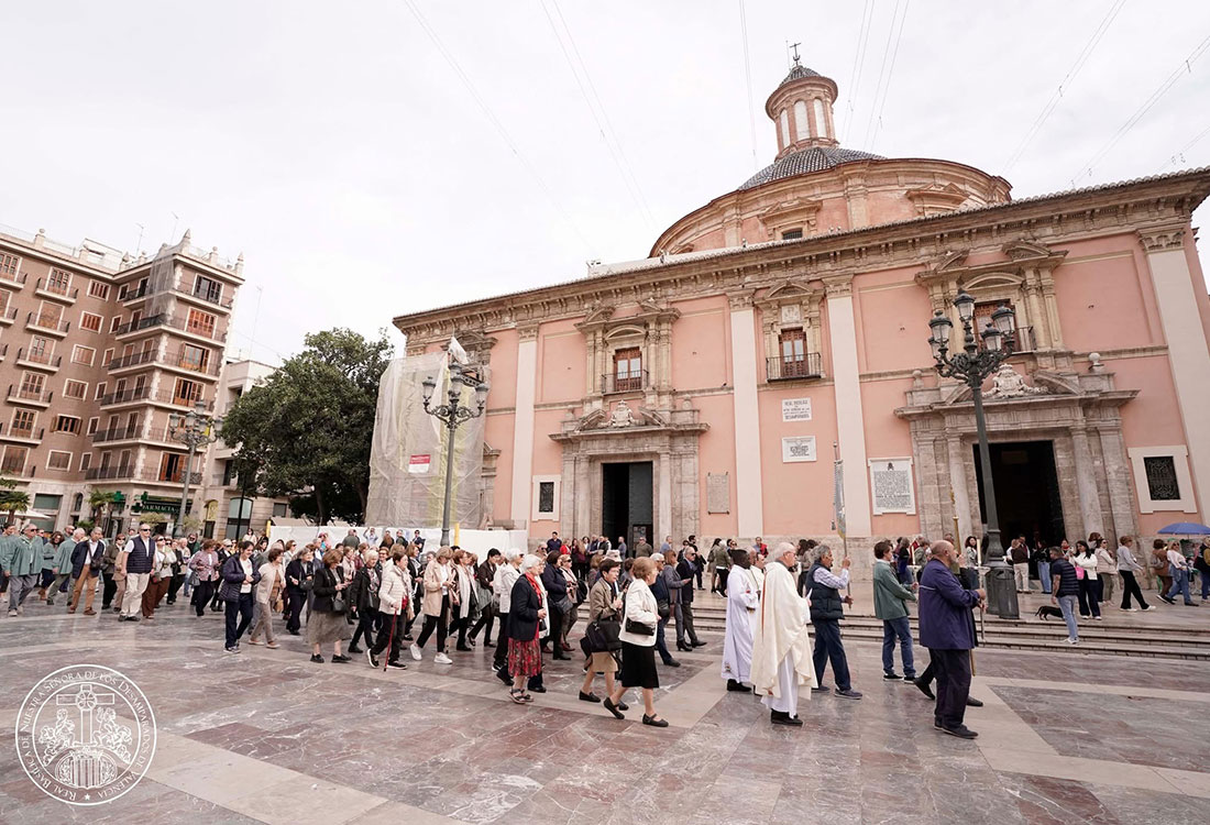 Un numeroso grupo de feligreses de las parroquias Nuestra Señora del Milagro y San Maximiliano María Kolbe de Valencia, y Parroquia San Martin Obispo de Alcàsser , junto a sus párrocos, llegaron en peregrinación hasta la Basílica de la Virgen de los Desamparados, uno de los templos jubilares de nuestra Archidiócesis de Valencia,en el Año Jubilar Peregrinos de la Esperanza convocado por el Papa, asistiendo todos a una misa jubilar.