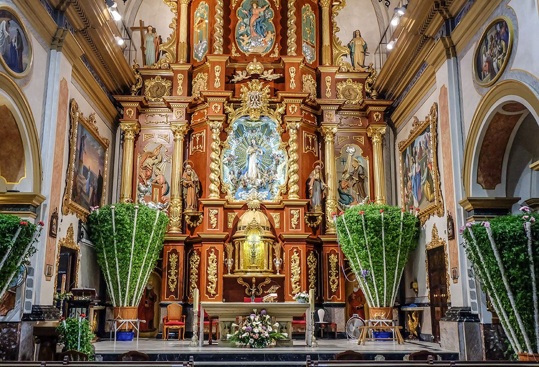 Imagen de archivo de la parroquia de la Purísima Concepción de Bétera con las tradicionales alfábegues (Foto: V. Almenar)