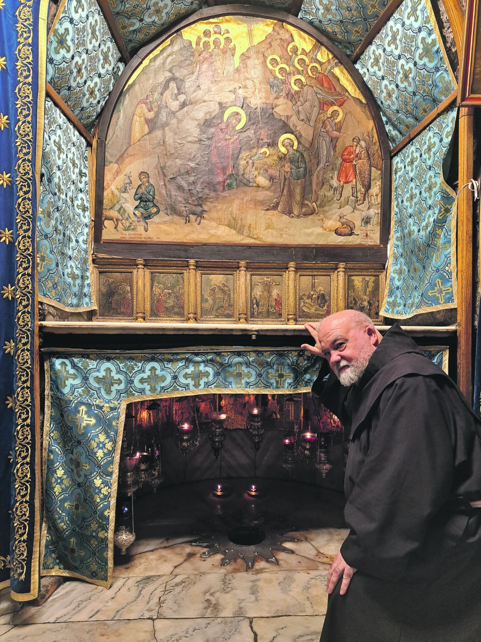 Sin embrago, para los que nos toca estar detrás de todo ese bullicio y alegría es una Navidad muy diferente: días de mucho desasosiego y tensión, mucho protocolo con visitantes importantes a los que hay que atender, el cura que se ha olvidado el alba y quiere concelebrar en la misa del Gallo, el diplomático que llega sin avisar, y así una lista larga. Además, los griegos ortodoxos y los armenios vigilando para que no hagas nada que no te permita el «status quo».