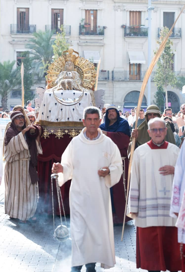 La imagen ha sido llevada desde la Catedral hasta la Capilla de la Virgen del Milagro, en la calle Trinquete de Caballeros, donde se venera todo el año, acompañada por el Cabildo de la Seo y portada en este recorrido por el “Grup de Mecha”, cuyos miembros iban caracterizados como los doce apóstoles.