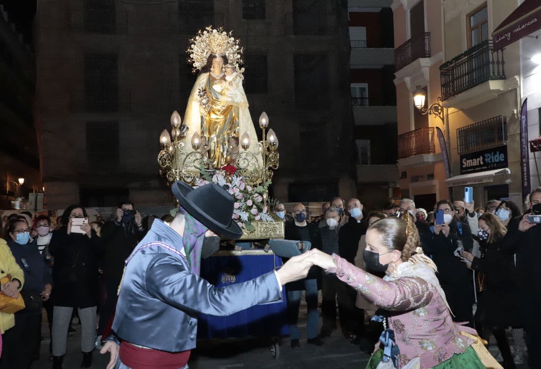 15 Ene 2022 La imagen peregrina de la Virgen de los Desamparados visita la parroquia de San Martín Obispo y San Antonio Abad Con motivo del 150 aniversario de la falla Plaza de la Merced