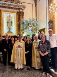 Este año, además, las fiestas contaron con la presencia institucional del Ayuntamiento de Valencia. «La alcaldesa, María José Catalá, nos visitó, saludó a clavarios y vecinos, y entregó al párroco, Ricardo Rozas, la insignia de la ciudad, pidiéndole que rezara por Valencia y sus habitantes», expresan desde la parroquia.