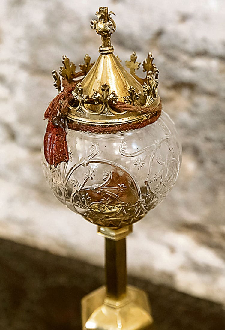 La reliquia es la parte superior, que es una taza de ágata finamente pulida, que muestra vetas de colores cálidos. Es una ‘copa alejandrina’ que los arqueólogos consideran de origen oriental y de los años 100 al 50 antes de Cristo.