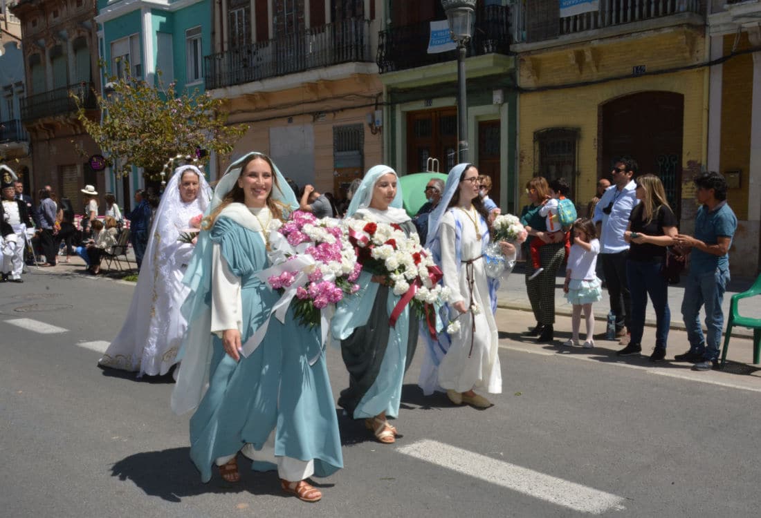 En el Desfile de Resurrección “en el que el público hasta entonces había permanecido en respetuoso silencio contemplando el lento discurrir de las procesiones, saluda, esta vez con aplausos y piropos, el paso rápido de las cofradías y de los personajes bíblicos que agradecen con flores las muestras de simpatía”, según han indicado desde la Semana Santa Marinera.