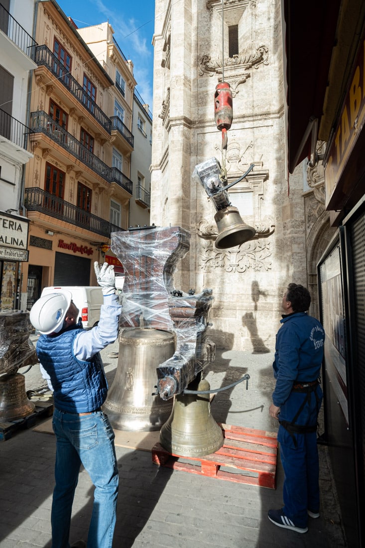 Este primer conjunto de seis bronces completa una parte del proyecto de recuperación de campanas inglesas de la torre de Santa Catalina impulsado por la Hermandad de Sacerdotes Operarios Diocesanos, que atienden el templo desde 1950, el Arzobispado de Valencia y la Asociación Cultural “Mestres Campaners”. Las campanas sonarán por primera vez con volteos el día de la festividad de la Virgen de los Desamparados.