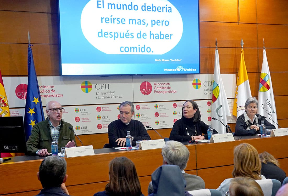 También han intervenido en esta presentación la misionera de las Hijas de la Caridad, María Gómez-Lechón; el consiliario de Manos Unidas Valencia, José Domenech y Carmen Puerto, responsable del Palacio de Colomina CEU, sede de la Universidad CEU Cardenal Herrera, lugar en el que se celebró el acto. “Este es un lugar de solidaridad y nos complace compartirlo con Manos Unidas”, ha señalado Carmen Puerto.
