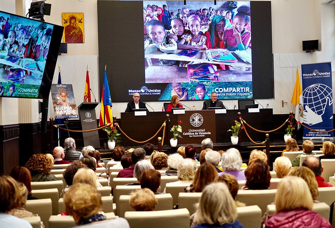 La lucha contra el hambre y sus causas es el hilo conductor del trabajo de Manos Unidas desde que se fundó hace ya 66 años. Y como ha denunciado la recién elegida delegada de Valencia, Amparo Peris, “el hambre no es solo falta de alimento. Es falta de justicia, de paz y de oportunidades. Y ahí es donde cobra sentido nuestra misión”. “Cuando trabajamos contra el hambre, trabajamos también por la paz”, ha señalado Peris.