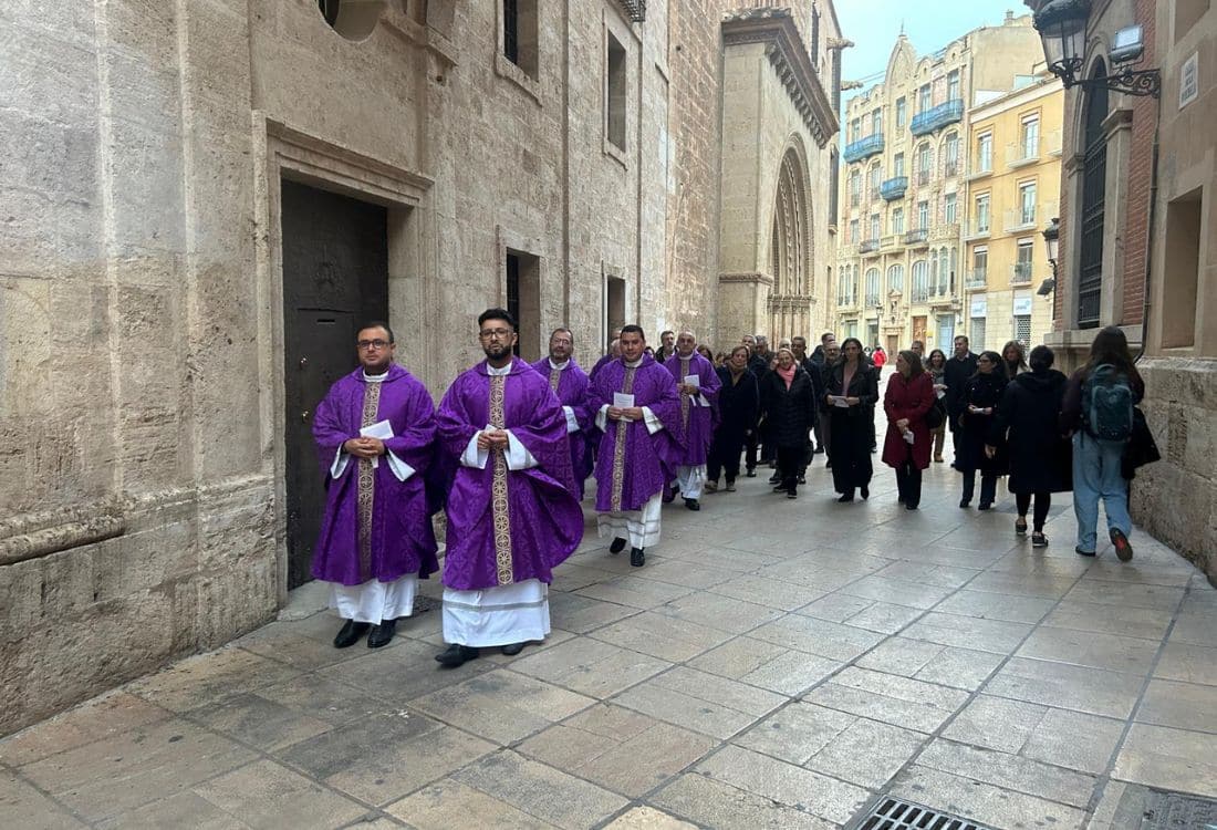 Los miembros de la Vicaría Judicial, los profesionales del foro y del Servicio de Acompañamiento y Mediación Familiar Canónica (SAMIC) de la Archidiócesis de Valencia peregrinaron juntos hasta la Catedral en el marco del Jubileo universal que la Iglesia Católica está celebrando en este año 2025, bajo el lema «Peregrinos de esperanza», y en el Año Santo Eucarístico «Cáliz de la esperanza». Respondieron así a la invitación de la Iglesia que, en estos acontecimientos de gracia, destaca la relevancia de nuestra vocación al servicio de la justicia y en el apoyo de la familia que sufre.