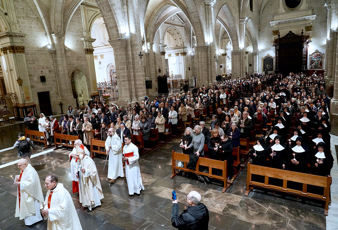 La Archidiócesis de Valencia celebró ayer lunes la Jornada de la Vida Consagrada, con una misa en la Catedral -coincidiendo con la fiesta litúrgica de la Presentación del Señor- que fue presidida por el arzobispo de Valencia, monseñor Enrique Benavent.