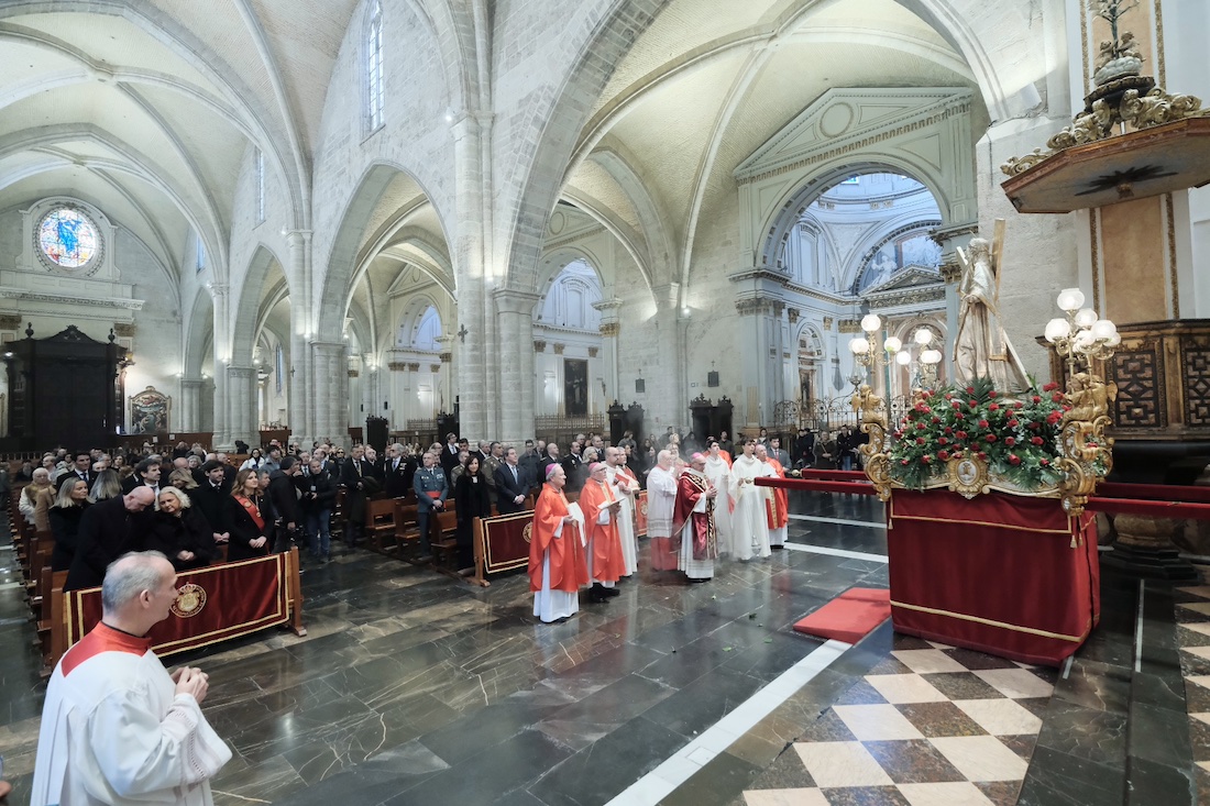 Durante la celebración en honor al patrón de la ciudad de Valencia y de la archidiócesis, se ha rezado especialmente por las familias y víctimas de los recientes accidentes ferroviarios en España, -en alusión a la tragedia de Adamuz (Córdoba)- y por el rápido restablecimiento de los afectados.