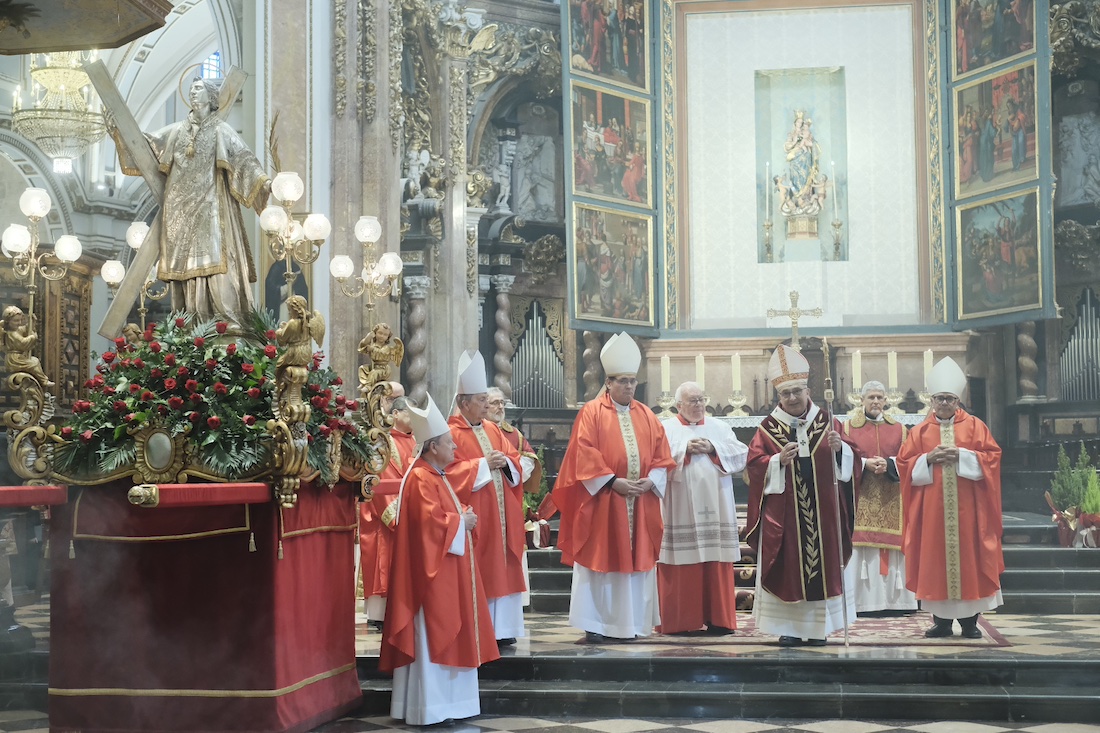 La eucaristía ha sido concelebrada por los Obispos auxiliares de Valencia, Mons. Fernando Ramón y Arturo García, y los Obispos eméritos Mons. Javier Salinas y Salvador Giménez, junto al Cabildo, miembros del Consejo Episcopal y sacerdotes de parroquias vinculadas a San Vicente Mártir.