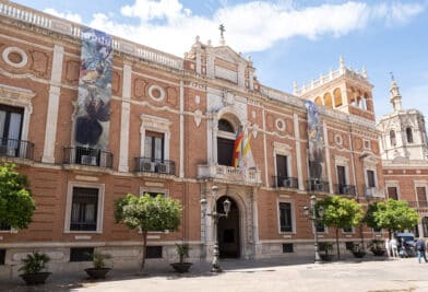 El Palacio Arzobispal de Valencia ha decorado su fachada con dos grandes lonas, de nueve metros de largo, dedicadas al Año Jubilar del Centenario de la Coronación Canónica de la Virgen de los Desamparados que culminará el fin de semana del 13 y 14 de mayo.
