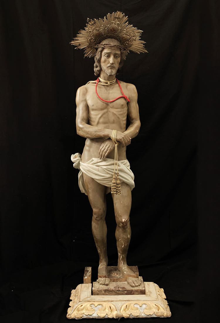 Con motivo de la DANA, el agua entró en la iglesia, causando numerosos daños, especialmente en esta imagen. La escultura presentaba diversos deterioros, localizados principalmente en la parte baja de sus piernas y en la base.