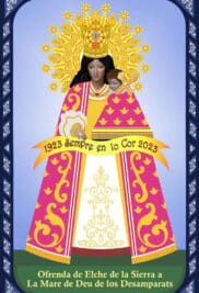 El rostro de la Virgen de los Desamparados y del niño Jesús serán realizados a mano por un artista local de Elche de la Sierra. Sobre esa imagen, con la técnica de moldes superpuestos y serrín, “se reflejará la Coronación de la Virgen en sus dos dimensiones, Reina del Cielo, con su corona de doce estrellas, y Reina de Valencia, con su corona real”, explican.