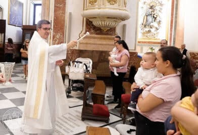 En la Basílica fueron recibidas por el rector, Melchor Seguí, y el vicerrector, Álvaro Almenar, que impartieron la bendición a todos los pequeños y sus madres.