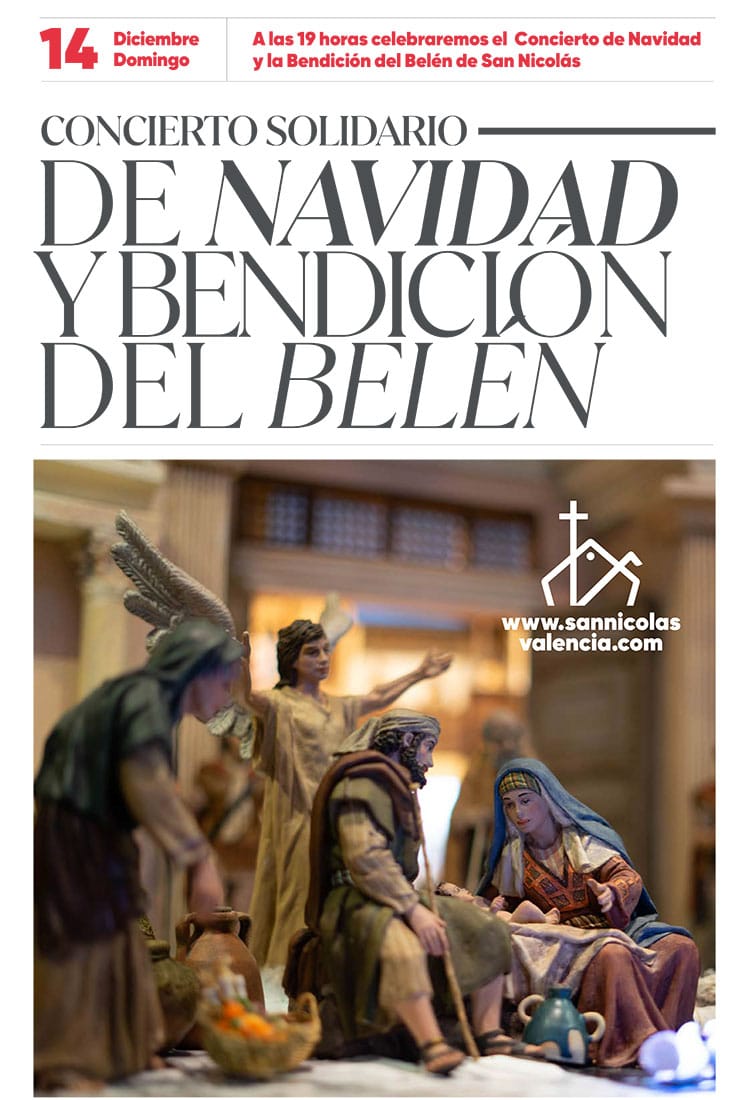 El domingo 14 de diciembre a las 19:00 h, la Parroquia de San Nicolás acogerá su tradicional Concierto de Navidad, seguido de la bendición del belén. El acceso se realizará por orden de llegada hasta completar aforo y tendrá un donativo voluntario de 10 euros destinados a colaborar con los “Desayunos Solidarios” del comedor social del colegio Nuestra Señora de los Desamparados de Nazaret. Una celebración que marca el inicio de la programación navideña en uno de los templos más emblemáticos de Valencia.