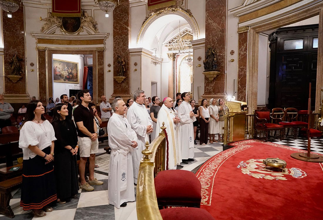 La Basílica de la Virgen de los Desamparados acogió ayer, viernes, una vigilia de oración para jóvenes, presidida por el arzobispo de Valencia, monseñor Enrique Benavent.