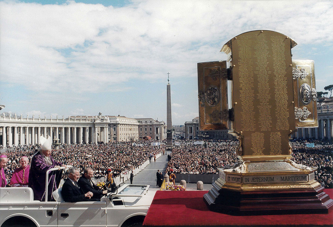 El Papa Juan Pablo II les dijo a los peregrinos españoles: estos mártires demuestran la unidad y diversidad eclesial. Aquella ceremonia, que tuvo lugar en la Plaza de San pedro de Roma y presidida por Juan Pablo II, tuvo las siguientes características:
